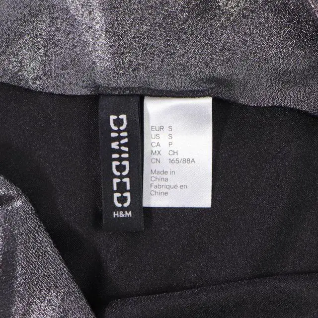 The H&M Divided Brand Form Fitting One Shoulder Top. Size S (Small). Shiny Silver color.