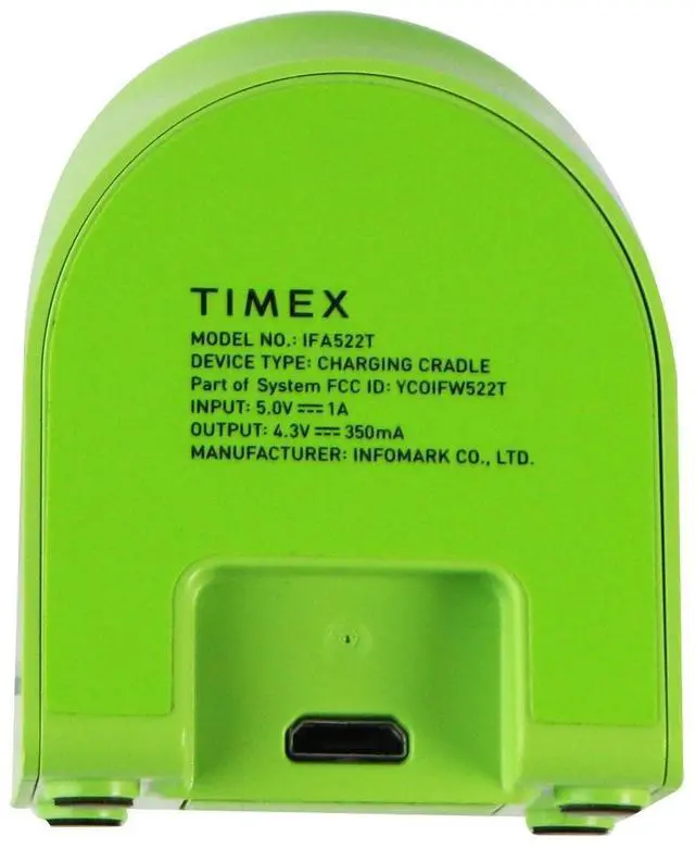 A Timex Charging Cradle. Lime Green color. Model: (IFA522T). 4.3-Volt/350mA Output.