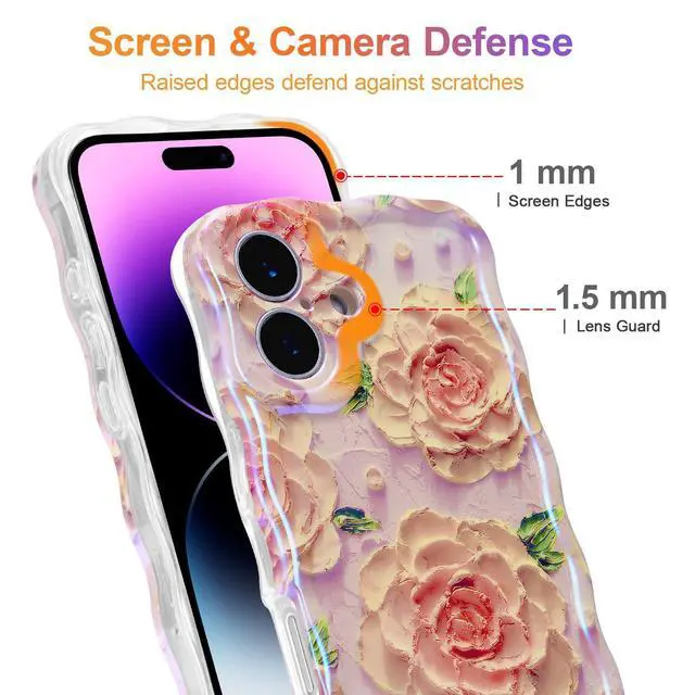 • Compatible Model: This pretty oil painting flower floral design phone case compatible with iPhone 16 Plus 6.7 inches ONLY; please check the phone model size carefully before purchasing; cute flower pattern printed by IMD, but Not 3D, without 3D touch