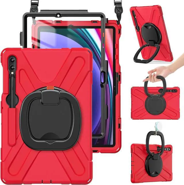 Case for Sam-sung Galaxy Tab S10+/S9 FE+/S9+ 12.4\u201d 2024 SM-X820/X610/X810, Shockproof Silicone Case with Screen Protector/S Pen Holder/Shoulder Strap/Kickstand for Galaxy Tab S8+/S7 FE/S7+,Red