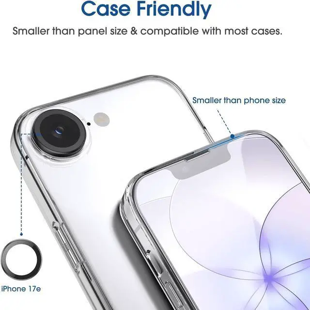 After testing they effectively prevented 99.99 % of fingerprints caused by sweat and oil stains. Ultra-Clear and Ultra-SensitiveOur iPhone 17e screen protector uses high-quality materials and advanced coating technology to provide a clear visual experience ensuring smooth screen touching and sensitive response. Whether swiping tapping or gaming you can enjoy a seamless experience without delay or lag. Screen Protector Compatible with iPhone 17e 6.1 Specially designed ONLY for iPhone 17e 6.1. Not compatible with any other iPhone models.