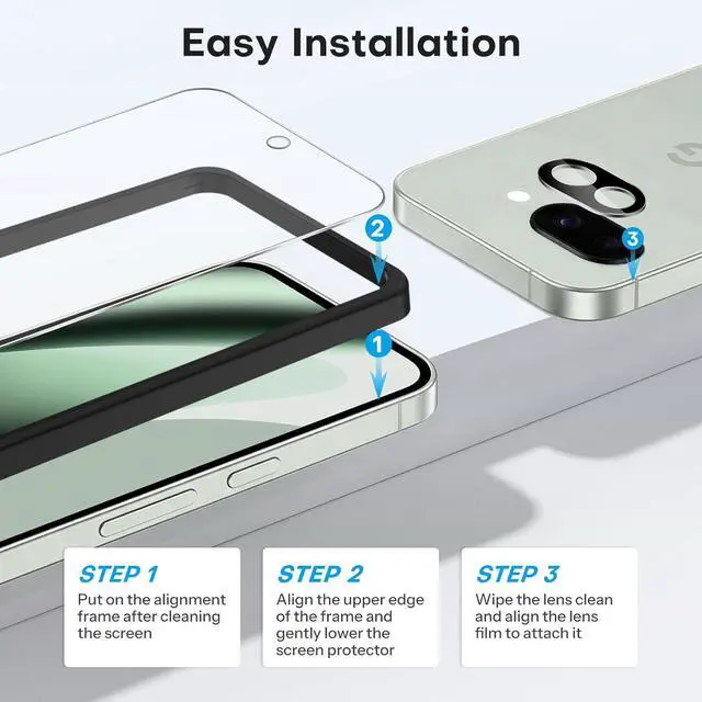 Protection: 9H hardness tempered glass screen protector protects your Pixel 10a from scratches and abrasions. Special-designed camera lens protector keeps the phone camera from smudge and fingerprintsEasy