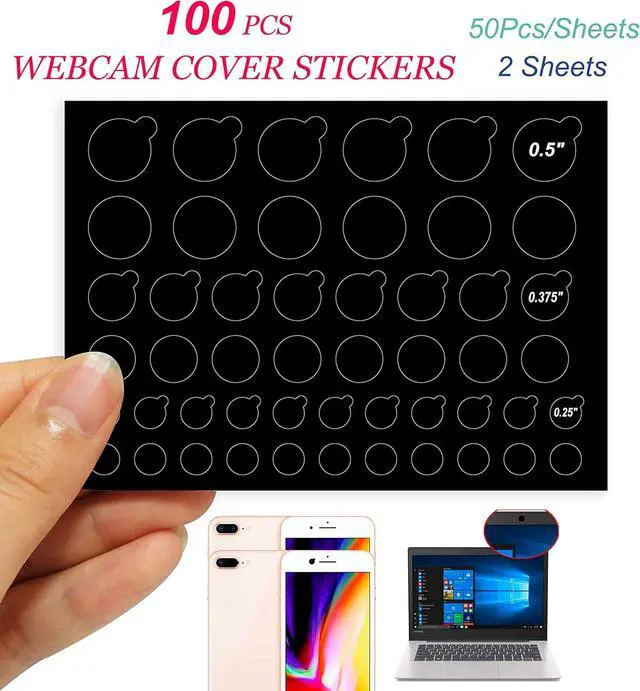 100 PCS Webcam Covers in 3 Sizes 2 Styles - (Circular style 1) 0.5 x 12 (Circular style 2) 0.5 x 12. (Circular style 1) 0.375 x 16 (Circular style 2) 0.375 x 16. (Circular style 1) 0.25 x 22 (Circular style 2) 0.25 x 22. Use stickers according to the size of the camera. These camera stickers are Removable and Reusable No Sticky Adhesive Residue | Water Resistant Thin Won't Scratch Your Laptop & Shuts Easily. Simply place sticker over camera lens to protect your privacy. Perfect for Computers Smart Phones Tablets Smart Home devices Smart TVs & Game Consoles.