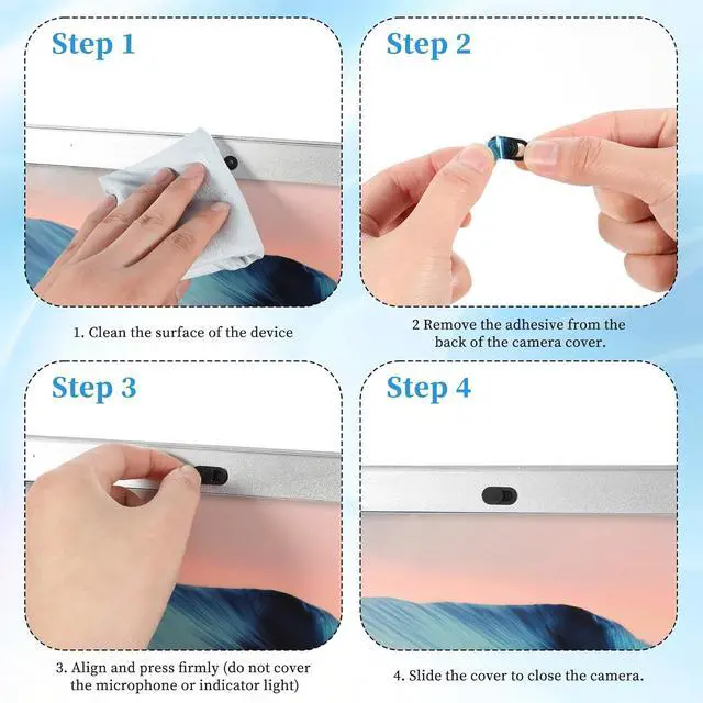 Privacy ProtectionSecure your personal space with this webcam cover effectively blocking unwanted access to your laptop camera. This privacy barrier meets your personal stays confidentialSeamless OperationWith a user-friendly sliding mechanism this laptop camera cover provides a smooth transition allowing you to open or shut your camera effortlessly. Its intuitive design makes switching between privacy and use a breezeUniversal FitDesigned to fit a most of devices from laptops and desktops to smartphones this webcam cover accommodates most standard camera sizes offering consistent security across your tech gadgetsRobust ConstructionCrafted from ABS materials this cover is built to endure daily wear and tear.