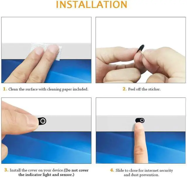 It is perfect to provide privacy security and peace of mind to individuals groups companies organizations and governments. EASY TO USE You can easily tear off the back protection film and then align to your webcam attach and press firmly for 15 seconds for a strong but non-permanent seal. Simply place your finger on the disc and slide your finger to hide and unhide the web camera. QUALITY ASSURANCE12 MONTHS PRODUCTS GUARANTEE. If any questions just contact us 7*24 customer service we will refund you or send new replacement in 12 hours.
