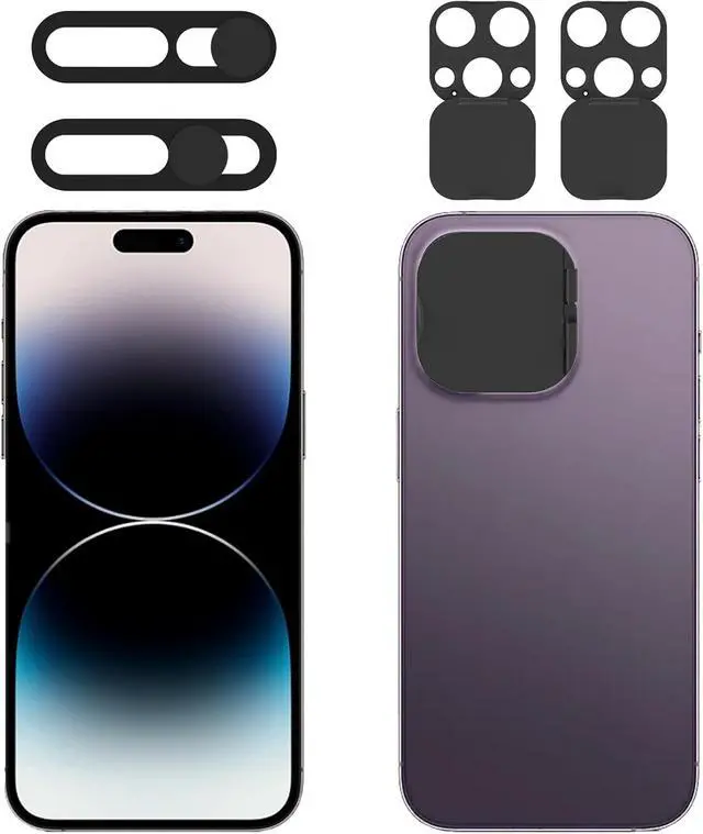Package contains 2 camera lens cover compatible for 14 Pro /Phone 14 Pro Max and 2 front camera cover compatible for Phone 14 Pro/ Phone 14 Pro Max (Black) The front webcam cover is compatible for Phone 14 Pro Phone 14 Pro Max. Does not affect normal photography and video can prevent scratches or wear. Please make sure your phone matches this series. The back camera cover is just compatible for 14 Pro/Phone 14 Pro Max. Please make sure your phone matches this series. Webcam lens back camera cover is designed to protect the rear camera lens on your phone from collisions and keep it clean.