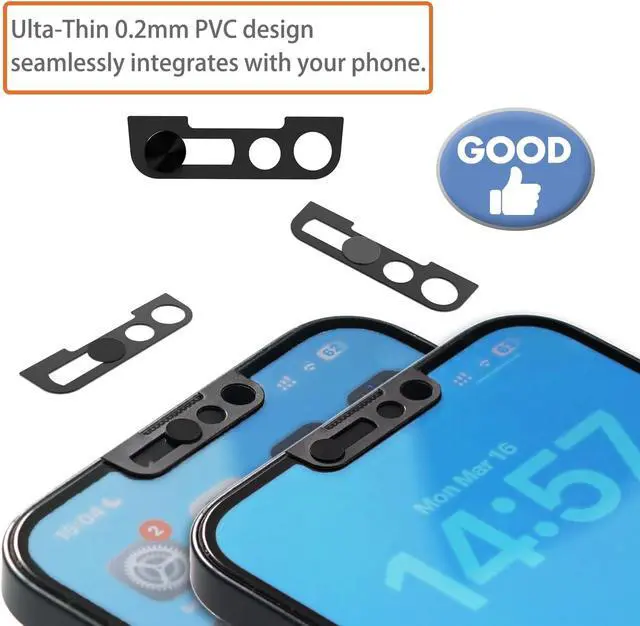 [Perfect Compatibility] Precisely designed for iPhone 17e/16e/14/14 Plus and 13 Series. Fits the front camera area perfectly without blocking sensors or interfering with Face ID[Privacy & Security Protection] Keep your personal life safe from unauthorized camera access. Effectively prevents spying and protects your privacy in daily use at home office or while traveling[Ultra-Thin & Seamless Design] Crafted from 0.2 mm ultra-thin PVC this camera cover fits flush with your iPhones notch without adding bulk or interfering with phone cases. Its slim profile ensures it wont catch on pockets or disrupt your phones sleek look while staying securely attached to the device.