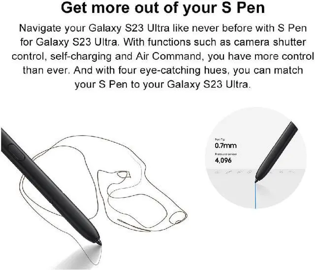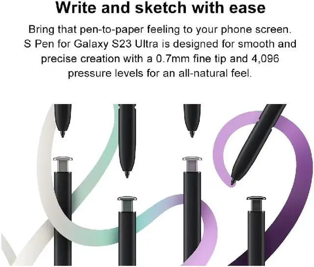 S Pen for Galaxy S23 Ultra is designed for smooth and precise creation with a 0.7 mm fine tip and 4, 096 pressure levels for an all-natural feel.
