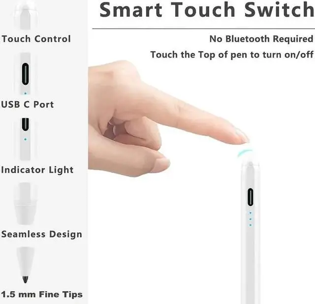 Easy to use: Simply turn on the stylus pen and start using it on your iPad. No need to connect via Bluetooth or install any apps.
