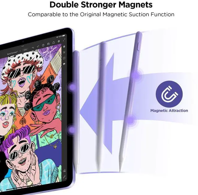 • [For iPad 2018-2025]No need to connect to Bluetooth.This ipad pencil is compatible with Apple iPad 2018-2025. This Pencil for iPad 11th/ 10th/ 9th/ 8th/ 7th/ 6th; iPad Pro M5/ M4/ 12.9 inch/ 11 inch; iPad Mini 5th/ 6th/ 7th; iPad Air (5th /4th /3rd); New iPad Pro 2024 11 inch &13 inch (M4, M5); New iPad Air 2024 11 inch &13 inch (M2, M3). Not compatible with iPad Pro 12.9 inch(2th/ 1st), iPad Pro 10.5/9.7 inch(4th/ 3rd/ 2nd/ 1st), iPad 5th/ 4th / 3rd/ 2nd / 1st, iPad air 2nd/ 1st, iPad Mini 4th /3rd/ 2nd/ 1st.And it's easy to use! Double-click the top touch control to turn it on.This iPad pen is magnetically adsorbed and can be attached to the iPad when not in use.