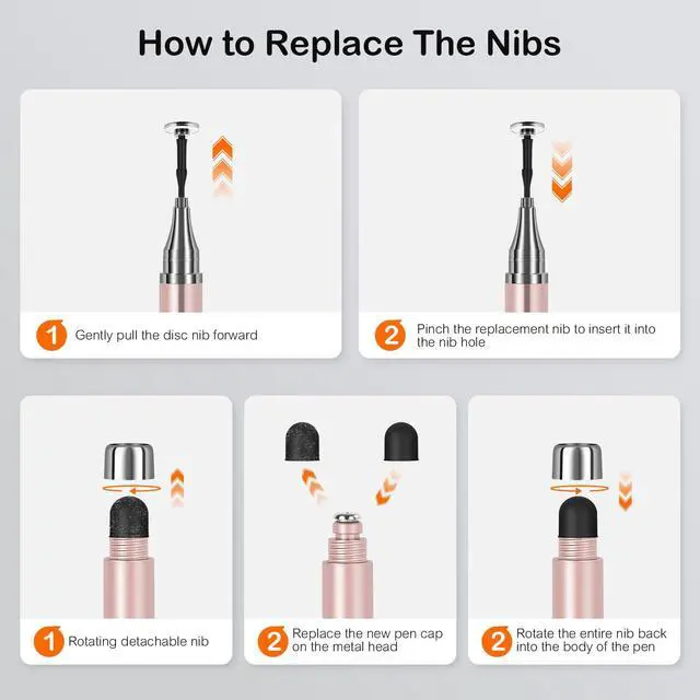 Replaceable Nib for Extended Use: The stylus pen comes with an extra tip for long-lasting use. Simply unscrew the metal cap to easily access and swap out the nib, ensuring your stylus is always ready for smooth and precise performance.