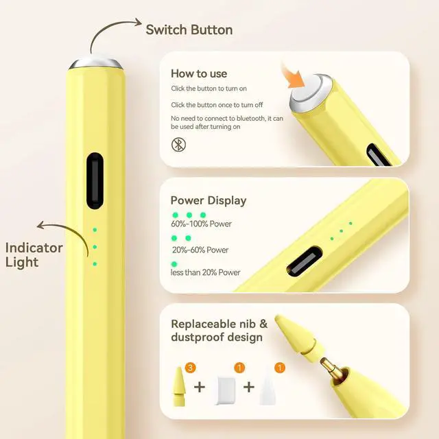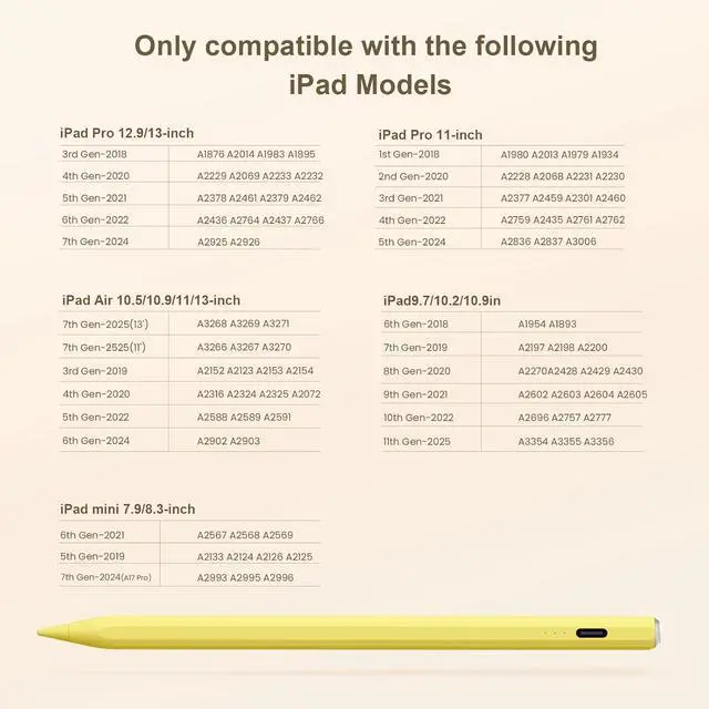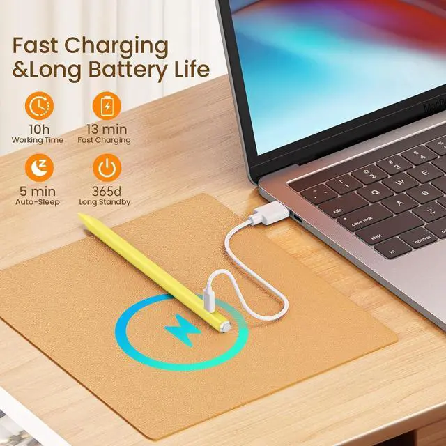 Experience precise and responsive input with the Stylus Pen for iPad, designed for compatibility with iPad models from 2018 to 2026, including iPad 11th, 10th, 9th, 8th, and 7th Gen, as well as iPad Air, Pro, and Mini series. This stylus pen features ultra-fast charging via a Type-C interface, achieving a full charge in just 13 minutes and providing over 10 hours of continuous useideal for extended creative or productivity sessions.