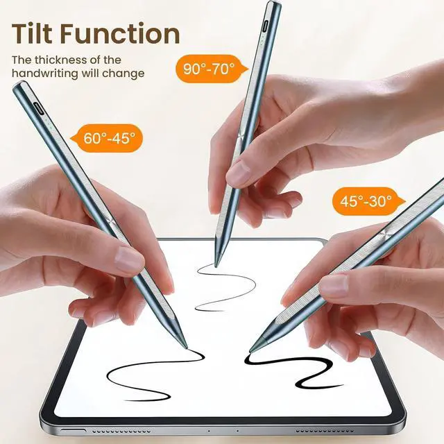 • Tilt Sensitivity and Palm Rejection: Hastraith ipad pen uses tilt pressure sensing technology, which can dynamically adjust the line thickness according to the different tilt angles of the pen side. The full-screen palm rejection function ensures that when using a capacitive pen, the finger or palm touching the screen will not cause accidental touches, while ensuring the smoothness and stability of writing.