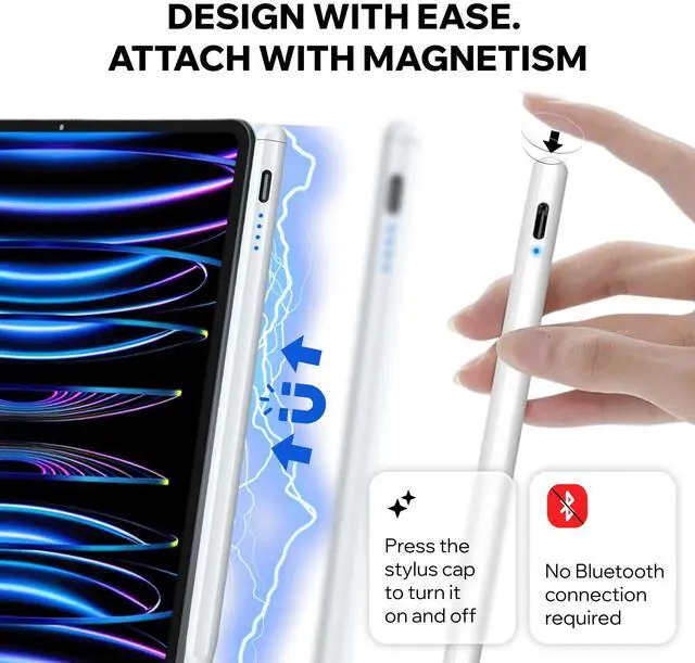 Universal Stylus Pen for Touch Screens This universal stylus pen is designed for everyday use on touch screen devices, including iPad, iPhone, Android tablets and smartphones. Whether you are taking notes, writing, browsing, signing documents or navigating apps, it offers a smooth and precise experience across multiple devices. The responsive tip provides accurate control for writing and basic drawing, helping reduce mistakes and improve on-screen accuracy. The lightweight and ergonomic design makes the stylus comfortable to hold and easy to use during long study or work sessions, at home, in the office or at school. Compatible with both iOS and Android devices, this touch screen stylus requires no Bluetooth connection or app installation. Simply power it on and start using it instantly with your tablet or phone. With fast charging technology, the stylus fully charges in about 20 minutes and delivers up to 12 hours of continuous use. A reliable rechargeable battery ensures consistent performance throughout the day without frequent recharging. Compact, durable and easy to carry, this stylus pen fits conveniently in a bag or pocket. It is a practical accessory for students, office users and anyone looking for a simple and reliable stylus for daily tasks.