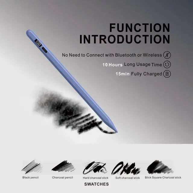 LED Battery Percentage IndicatorThe built in battery indicator uses actual percentages rather than a bar so you know exactly how much charge your stylus pen have left.