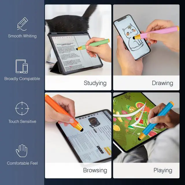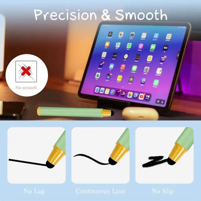 Ergonomic grip designed to make it easy to draw, write, and point. The round tip is very good for you to scrawl on the tablet devices. You can enjoy the creation with this stylus.