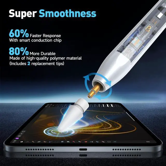 [Pixel-Precise & Magnetic Design] The ultra-fine tip delivers a smooth, silent writing experience, making this iPad pencil perfect for writing, drawing, detailed creation, or gaming. It offers lag-free, non-slip writing. Furthermore, its sturdy magnetic design allows the pencil to adhere firmly to your iPad, making it easy to store and charge, ensuring it's always ready to be used when inspiration strikes.