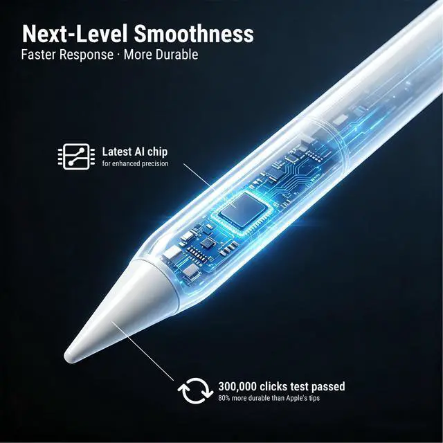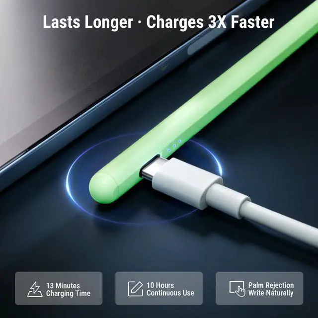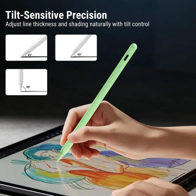 Palm Rejection & Magnetic Adsorption: Rest your hand naturally on the screen while writing or drawing, just like on paper, withoutwearing a glove. The stylus magnetically attaches to the side of your iPad (for supported models), preventing it from rolling away or getting lost. Ideal for students taking notes andartists sketching outdoors. Note: Does not support wireless charging.