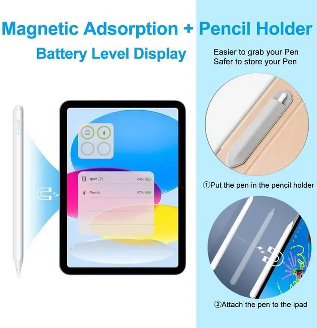The new generation of ipad stylus pen sets the standard for how drawing, writing and note-taking should feel - intuitive, precise and magical, just like a real pen. Our this upgraded Bluetooth smart pen can know the real-time battery level of the stylus through the iPad's battery assembly.You can check the power of apple pen on the iPad,Bring you a better experience.