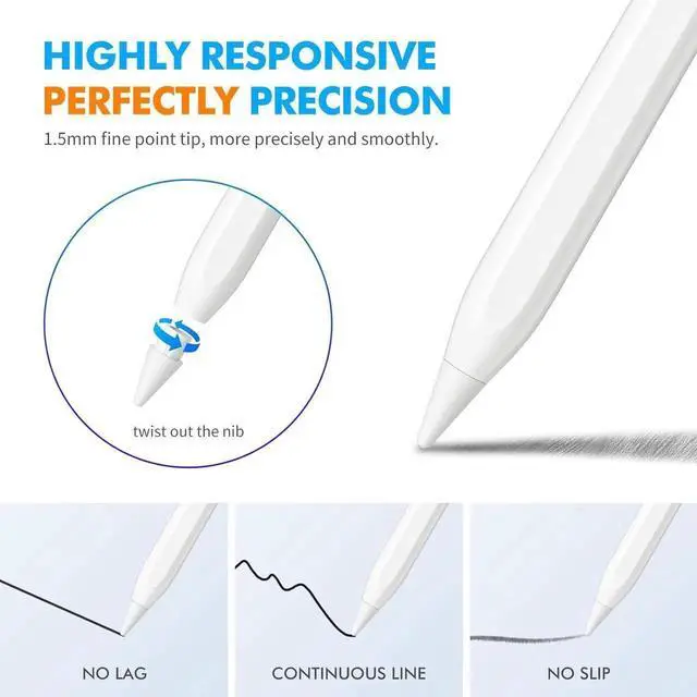 Precise and Smooth: 1.5mm pen tip can replace your finger to execute finer instructions, it easy to install and tear off the tips on your stylus pen without any tool. No lag/offset/breaking point