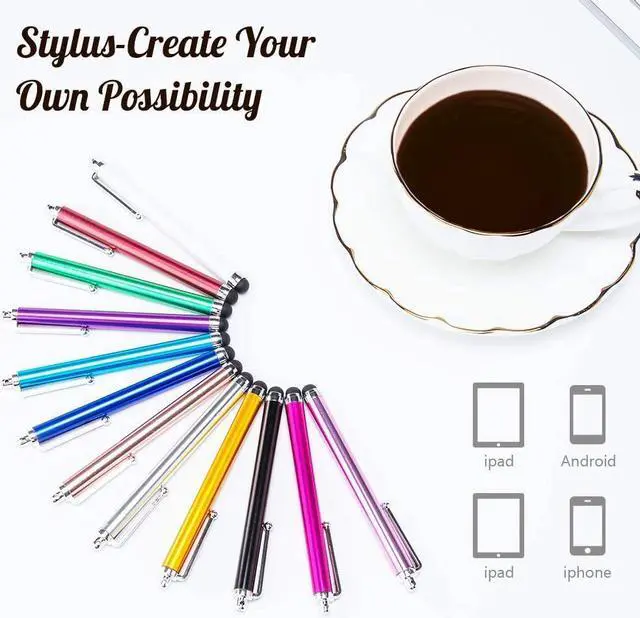 CAPACITIVE STYLUS PENS--The scratch resistant rubber tip is with great sensitivity and functions well with all capacitive touch screen devices. EASY TO CARRY--The stylus is with clip and the length is perfect to fit in a pocket diary. Made by lightweight aluminum so can keep one handy no matter where you are. SCRATCH PRE--The stylus anti-scratch tips slides smoothly across the screen and will not damage your touch screen devices and leave not fingerprint. LONG LASTING--Tip was made from premium soft scratch resistant rubber and the aluminum body make the stylus durable. SHARE WITH YOUR FAMILY AND FRIENDS--Our 36 packs stylus are come with 12 bright different colors which make it easy to find and plus you can chose one that matches your outfit that day.