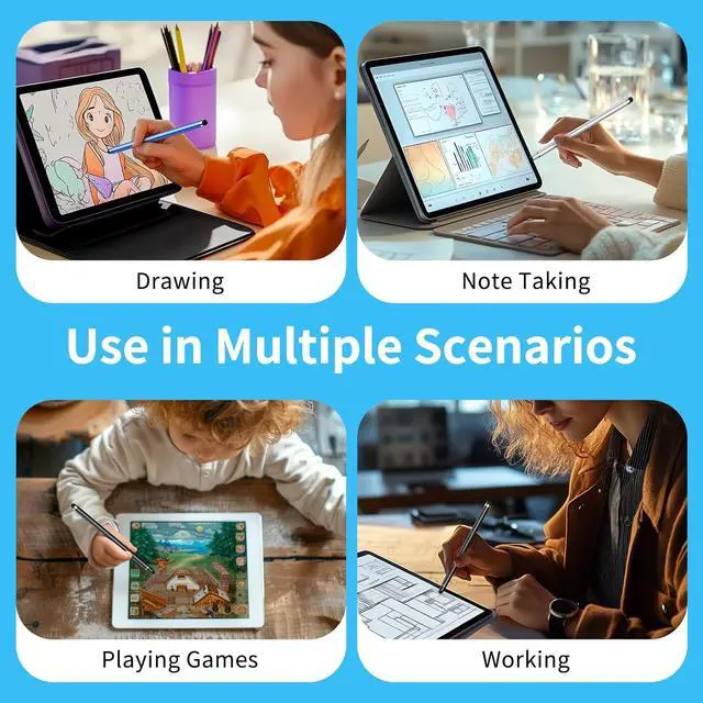 Whether it's drawing note-taking browsing gaming for ipad pen provide seamless interaction and for who want to enhance their touchscreen experience stylus pen for ipad is easily adaptable. those who want to enhance their touchscreen experience for ipad stylus easily adapts to your needsMultiple Color Options Three different colors of touchscreen stylus (black/blue/silver) in vibrant shades that inspire creativity whether you are a student artist or professional these colours will make your stylus for ipad not just a replacement for your fingers but a fashion statement