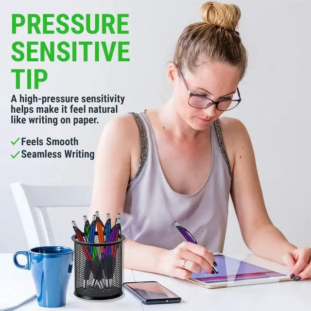 ULTRA SENSITIVE TIP: Our stylus pen is the best stylus durable conductive fiber/rubber hybrid tip gliding across any touch screen highly sensitive & smooth providing a seamless pen-like writing experience. The fine tip allows you to achieve greater detail in your note taking & art projects.