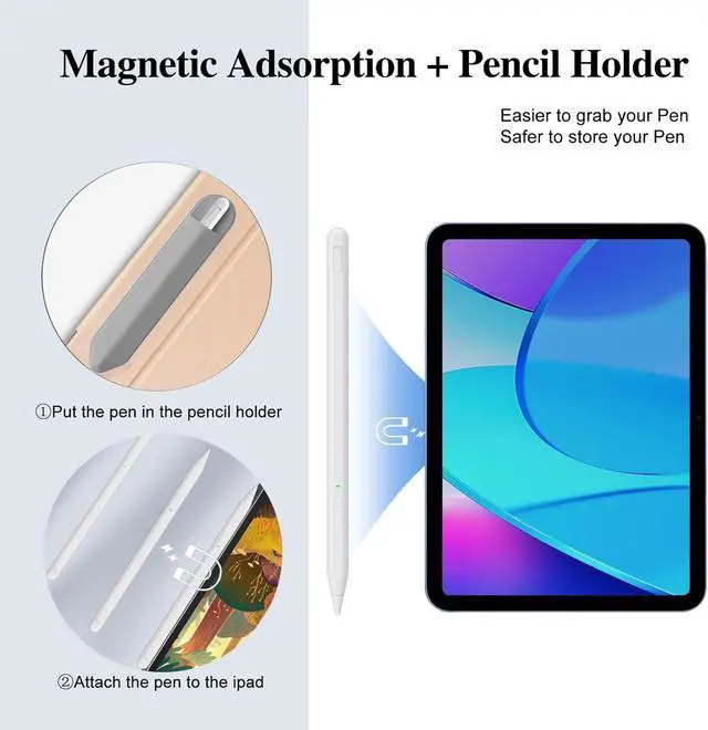 Smooth&Perfectly PrecisionThe iPad stylus pen is equipped with a 0.9 mm upgraded POM tip which makes it more sensitive and precise. No lagging no skips no scratches giving you a better experience like a real pencil. the tilt technology makes your writing and drawing more freedom than ever. Pencil Holder&One-piece Dust Plug DesignComes with a pencil holderStrong adhesive keeps the pencil holder securely in placeholds your pen more securely allowing you to grab or store the pen quickly and easily. The improved version of the 2025 Pen solves the trouble that the old split dust plug is easy to lose after taking off and the innovation is improved to the one-piece dust plug.