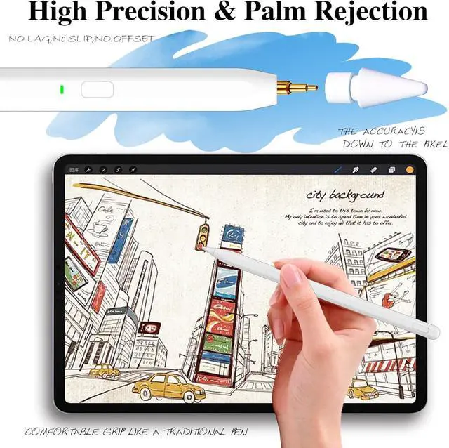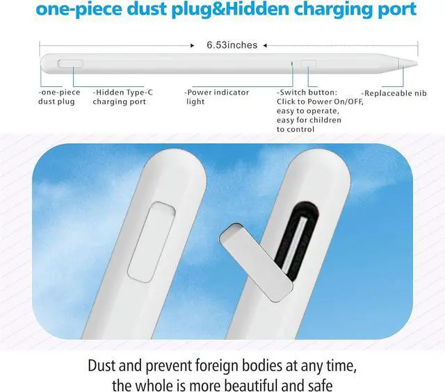 When you need to charge the pen first remove the one-piece dust plug on the charging hole insert the charging interface and charge at ease and you don't have to worry about the small dust plug being lost. Palm Rejection&Tilt Sensitivity- Stylus for iPad pencil 10th generations palm rejection design can free your hands You can easily use your hands on the screen. Stylus for iPad pencil 10th generations utilizes the latest tilt technology Tilt function enables you to paint different stroke of thickness and depth by varying stylus pen for iPad tip dip perfect for drawing or writing on iPad.