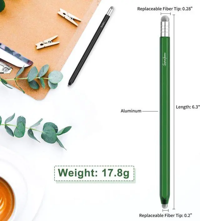 ?? 2 IN 1 DESIGN SENSITIVE STYLUS2 different sizes fiber tips in both sides of the pen which give you 2 options to use provides smooth drawing and senstivity writing experience on touch screens convenient for click and browse on your screen devices.?? ANTI-SCRATCH TIP STYLUS PENSThe touch screen stylus have the exquisite soft fiber tip it's very sensitive which is suitable for capacitive touch screen and it can protect your screen from scratching and keep no fingerprints.?? UNIVERSAL CAPACITIVE STYLUS Compatible with all capacitive touch screen devices including iPad iPad Pro iPhone Android tablets & smart phones galaxy and so on.
