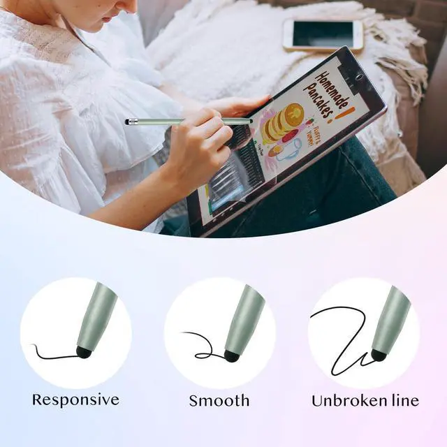 Stylus Pen for Touchscreen The LINFANC stylus is incredibly easy to use and ready when inspiration strikes. Dream it up and jot it down anytime. The LINFANC pencil stylus helps bring your ideas to life. High Sensitivity and PrecisionThe LINFANC stylus provides high precision low latency and high sensitivity and feels as natural and responsive as using a pencil on paper. It is perfect for taking notes marking up browsing web drawing and more. 2-in-1 Stylus Pen The LINFANC stylus pen meets all your needs in one stylus pen. Designed with two distinct rubber tips the smaller tip offers enhanced precision for drawing and detailed tasks while the larger tip provides a smoother experience for sliding screens browsing web and gaming.