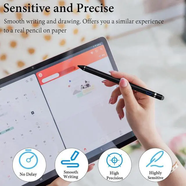 Battery Life: This tablet stylus digital pen built-in battery only 1- 1.5 hours of charging 10 hours of use with Micro USB cable. The phone stylus automatically turns off the power every 5 minutes to protect battery lifeEasy to