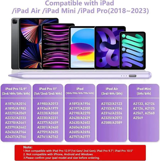Wide Compatibilityfor for iPad pen is compatible with iPad 11th/10th/9th/8th/7th/6th gen 2018~2025 iPad 11-inch A16 for iPad Air 7th/5th/4th/3rd generation for iPad Air 11/13 (M3) for iPad Mini 6th/5th for iPad Pro 11 inches for iPad Pro 12.9 inch.
