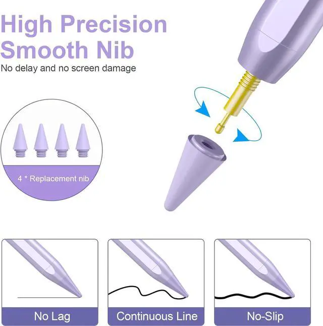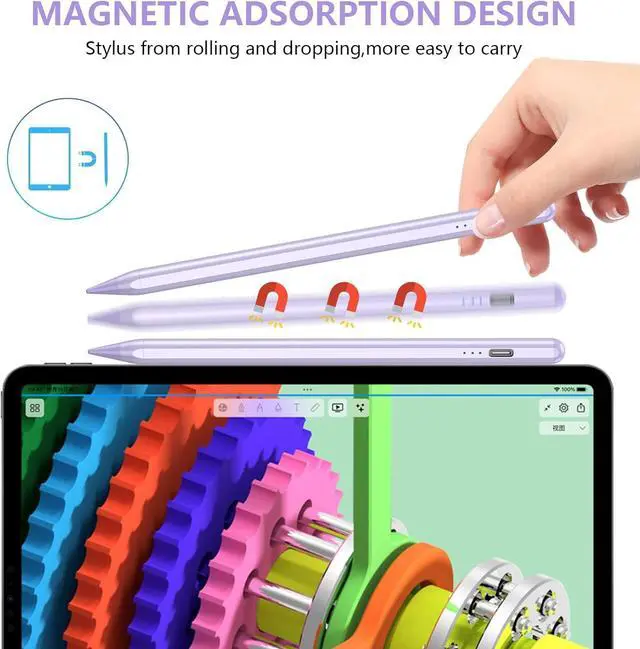 Notice: Not compatible with iPad before 2018 and also not compatible with devices such as iPhone Android or Windows. Precise Nip&Tilt SensitiveWith ultra-fine 1.5 mm tip the stylus pen for iPad is as precise as a real pen. No lagging no skips and no scratches to screen. Its sensitivity to pressure and tilt allows you to draw lines of different thickness in various angles. Simple Connection & Power SavingNo need Bluetooth or APP. Just touch the top of the stylus pen for about 2 seconds the stylus pencil will be turned on and automatically connect with your for iPad and ready to work for you. Power saving design allows it to automatically get into sleeping mode for power saving. Palm Rejection DesignStylus pencil with palm rejection technology. No need to wear gloves or keep your hand away from the screen when youre painting sketching or taking notes which gives you a comfit writing experience. Magnetic Adsorption FunctionThe stylus pen for iPad 11th/10th/9th is adopted magnetic adsorption design. More convenient to carry and no lose. 8-10 hrs continuous use with only about 45 minutes charging. Perfect Giftfor pen for learning drawing writing and taking notes.
