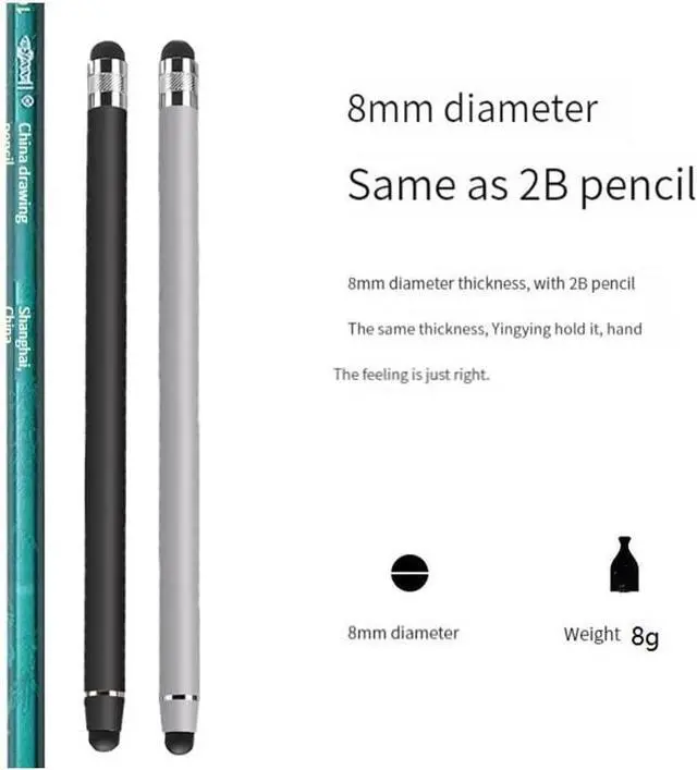 For All Touch ScreensThis stylus Pen is widely compatible with all touch screens including iPhone iPad smart phones touch screen laptops Galaxy android tablets for any capacitive touch screens device. Stylus pen High Precision The tip of this Stylus pen made of soft fiber for All touch screens with high precision and accuracy you can draw or take notes with pinpoint easily. You can get a more quiet and accurate writing and drawing experience. Excellent Design and MaterialsThis Stylus's body made of aluminum When we hold it in our hands it feels like a 2B pencil.