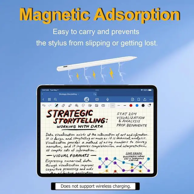 Magnetic Adsorption: The magnetic design enables the stylus to attach securely to your iPad preventing it from rolling away or getting misplaced. Its compact case-friendly design makes it easy to carry and ideal for on-the-go use.