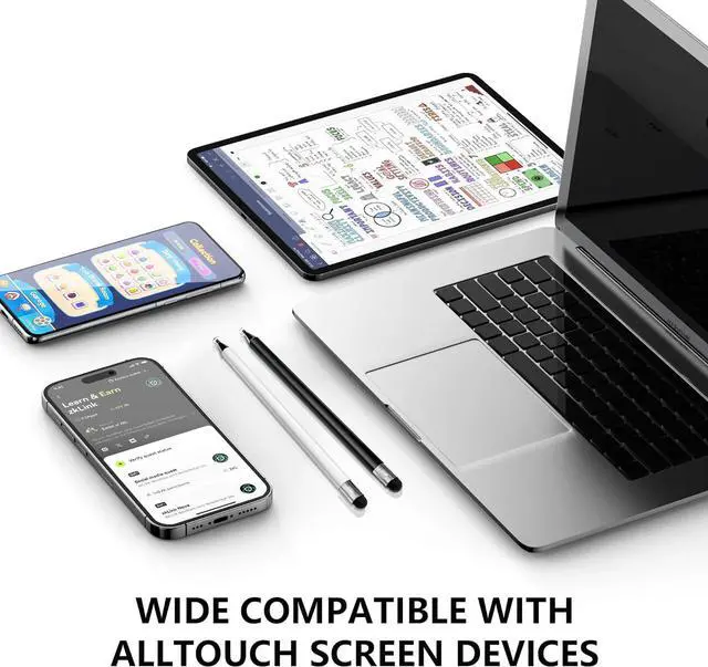 They are smooth and super sensitive crafted from premium materials like silicone which endows them with excellent abrasion resistance and anti-aging capabilities. The soft rubber heads won't scratch the screen and they also leave fewer fingerprints compared to fingers. This product is perfect for activities like screen browsing writing sketching drawing note-taking and gaming on various touch devices such as smartphones and tabletsThe 2 in 1 touch stylus is widely compatible with all capacitive mobile phones: touchscreen laptops tablets and e-readers. It works great with devices like tablets smartphones and