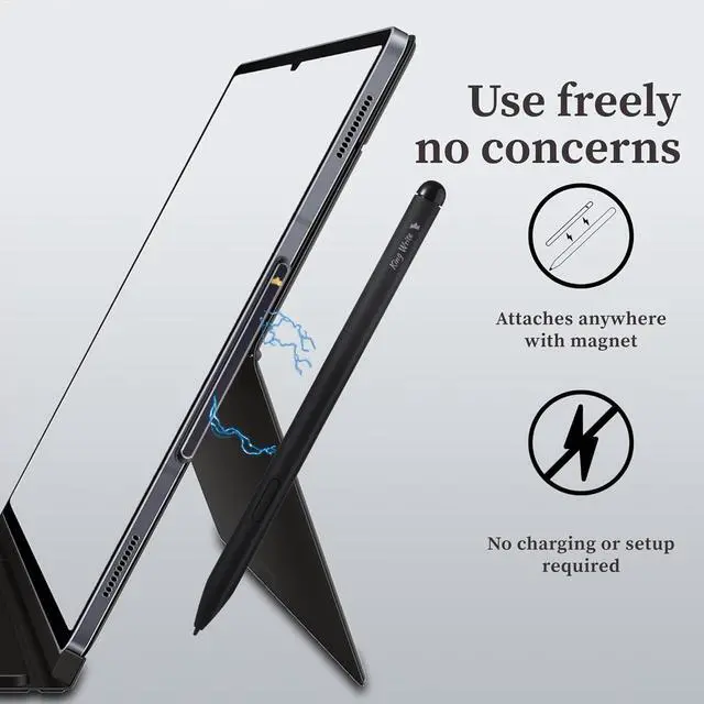 Tilt Support: Upgrade your writing and drawing experience with this stylus pen featuring 4096 pressure sensitivity levels and tilt sensitivity. Enjoy low latency pixel precision and a natural feel for sketching taking notes and digital artistry. Perfect for Galaxy Note Kindle Scribe and reMarkable 2. Palm Rejection & Built-in Digital Eraser No Smudging No Mistakes: Say goodbye to accidental touches! This EMR stylus supports palm rejection allowing you to write smoothly without interference. The digital eraser at the end lets you correct mistakes instantly. Works seamlessly with Kindle Scribe and reMarkable 2. Battery-Free No Charging Always Ready to