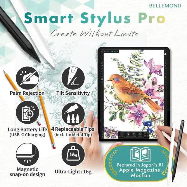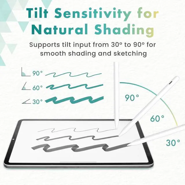 ?? Smart Stylus ProUltra-light 16.5 g aluminum stylus with Palm Rejection Tilt Sensitivity & 2× faster response. USB-C charging keeps you powered for work study and creativity. *For iPad Use Only??? Palm RejectionRest your hand naturally on the screen while writing or sketching. Prevents accidental input and makes note-taking drawing and editing feel natural and effortless.?? Tilt SensitivitySupports tilt input from 30°90° for natural shading and varied line thickness. Perfect for sketching detailed illustrations and accurate digital handwriting.?? 8H Battery Life & Auto Power-OffUp to 8 hours continuous use on a single charge.