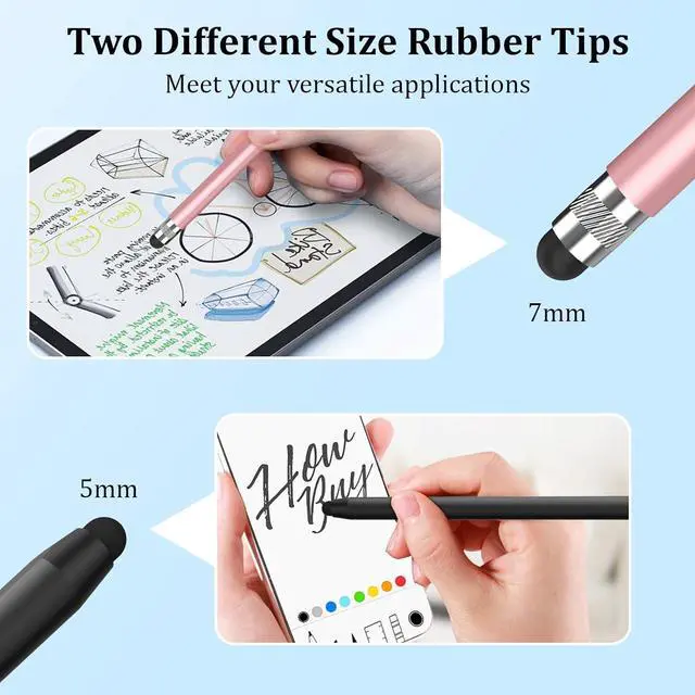 2 in1 Stylus for Touch ScreensThis stylus pen was designed with dual-ended rubber tips of different sizes perfect for daily use. Glide smoothly across screen with enhanced sensitivity for accurate clicks drawing writing and browsing. Anti-scratch Tip Stylus Pens Granarbol stylus pen for iPad features durable and scratch-resistant rubber tips Not only does it protect your screen from scratches but it also ensure a smooth fingerprint-free experience with no lags or skips. Capacitive StylusGranarbol stylus pens for touch screens seamlessly works with any capacitive touchscreen devices. Such as iPads (including iPad Pro Mini and Air) iPhones Kindle e-readers Galaxy and Android phones/tablets.