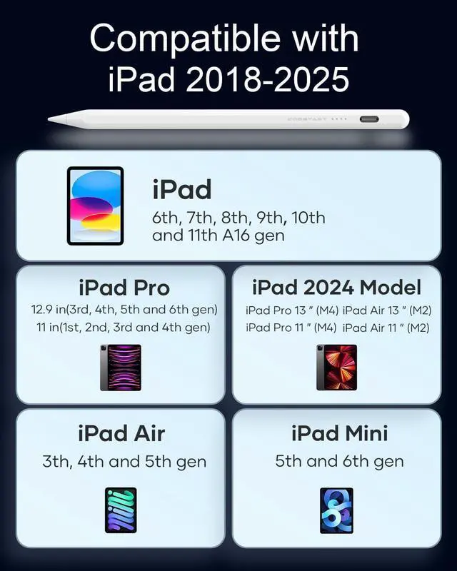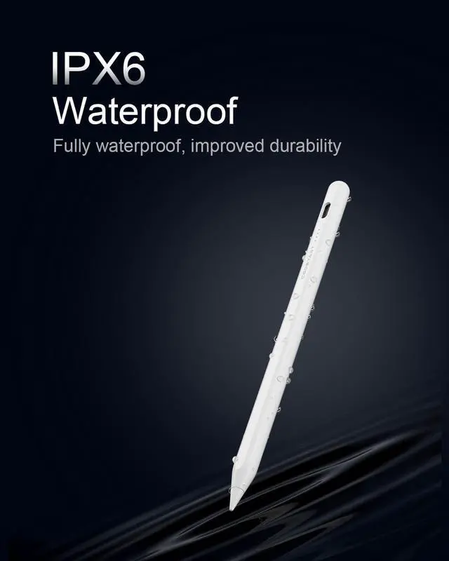 [Compatible with iPad 2018-2025]: This stylus is specifically designed for iPad 11th 10th 9th 6th 7th 8th Gen for iPad Air 13-inch & 11-inch for iPad Air 5th 3rd 4th Gen. for iPad Pro 13-inch for iPad Pro 11-inch (1st 2nd 3rd 4th Gen. and M4) for iPad Pro 12.9 -inch (3rd 4th 5th 6th Gen. ) for iPad mini 6th & 5th Gen. No Bluetooth requiredjust turn it on and start using instantly! [NOTE] Not compatible with iPhone Android or devices[IPX6