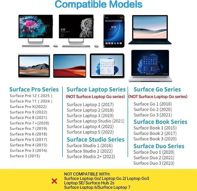 Wide Compatibility: Compatible with Surface Pro 12 Surface Pro 11th Edition Surface Pro 10Surface Pro 9 Surface Pro 8 Surface Pro 7+ Surface Pro 7 Surface Pro 6 Surface Pro 5 Surface Pro 4 Surface Pro 3 Surface Duo/ Duo 2 Surface Pro X Surface Go/Go 2/Go 3 Surface Book/Book 2/Book 3 Surface Studio 1st Gen Surface Studio 2 Surface Studio 2+ Surface Laptop 1/Laptop 2/Laptop 3/Laptop 4/Laptop 5. *Not compatible with Surface Laptop Go/ Laptop Go 2/ Laptop Go3/Laptop SE/Surface Hub 2s/Surface Laptop 6/Surface Laptop 7 and others touch screen computers?? 4096 Pressure Sensitivity& Eraser Side ButtonFine control with 4096 pressure points. Jvkzaen Surface pen ink flows out from a 1.0 mm tip in real-time with no lag or latency. Delete mistakes quickly. An eraser button close to the place where your thumb will be put on. Besides aluminum-alloy seamless body with a flat surface on both sides makes it more comfortable to grip and more likely to stay put on the desk. just like the Surface Slim Pen 2?? Double Magnets & Palm RejectionJvkzaen Surface pen is always ready to firmly attach to your Surface tablets with 2 stronger built-in magnets.