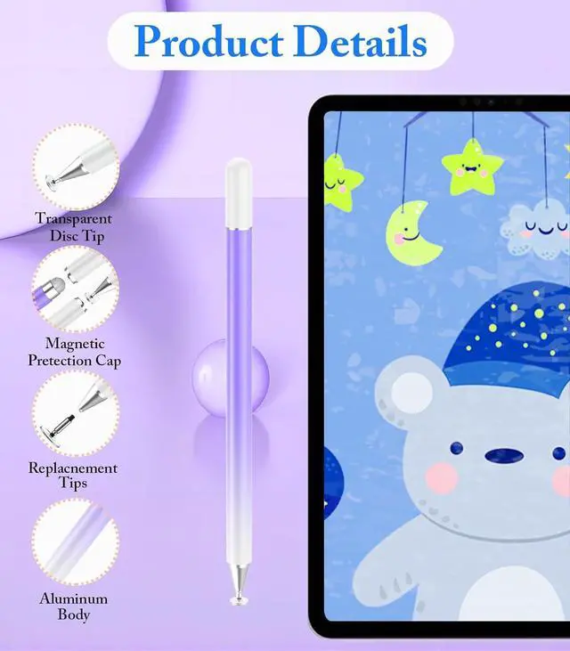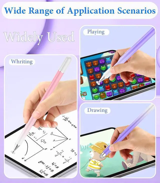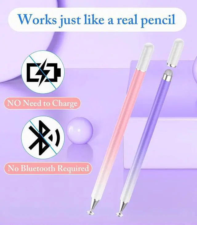 NOTE: Palm rejection is not supported so avoid resting your hand on the screen while using the stylusReplacement Tips This digital pen comes with 2 extra disc tips so you dont have to worry about finding a replacement if you damage it. The tablet stylus fiber tip soft and durable and disc tip is like having a cushion to prevent scratching or cracking the screen. This disc tip is transparent allowing you to get a clearer view when writing or drawingWhat You Get? You will get 2 iphone stylus in different colors (Purple/Pink) stylus accessories include 2 disc nibs.
