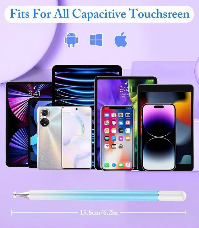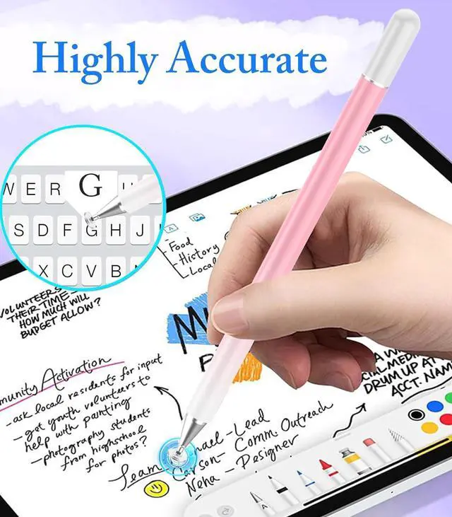 Universal Stylus PensKenkor stylus pen for android are widely compatible with almost all touch screens. Active pencil for iPad iPhone iPad Pro iPad Mini iPad Air SurfaceChromebook Galaxy Tab Xiaomi Android phones Android Tablets HTC Google LG and otherand others popular tablets/smartphones touch screen devices2 in 1 DesignThis Kenkor New 2-in-1 design stylus pen comes with different tips on both ends. One end has a clear disc tip that lets you see the precise pointing position on the screen and the other end has a durable fiber tip for browsing or scrolling the web effectively protecting the screen from fingerprints or smudges.