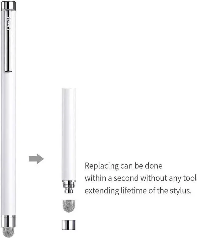 100% Compatible with all capacitive touch screen smartphones and tablet series. High quality made from metal no plastic parts real pen feeling. it is great worth for you to be possessed. Smooth use on any touch screen of modern digital devices protect screens against fingerprints grease scratches and other damage. Stylus tips ( included 4pcs extra fiber tips & 4pcs extra rubber tips ) can be replaced within a second without any tools.