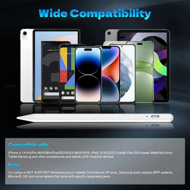 Wide Compatibility-This stylus pens is compatible with IOS and Android smartphones and tablets such as iPhone 6-14 Pro/Pro MAX/Mini/Plus/SE/XS/XS MAX/XR/X iPad( 2018-2022) XiaoMi Pad 5/6 MatePad Honor Tablet and so on.