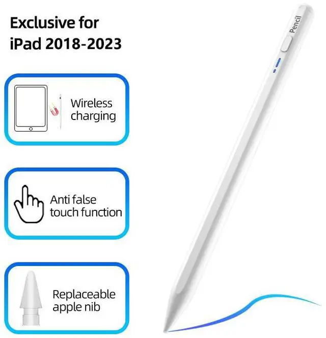 Unique Apple iPad Stylus with Touch Cap Switch & Magnetic Adsorption. Tilt Pressure, Palm Rejection, Bluetooth Battery Display. 24H Power, 2 Extra Tips. Fits All iPad Models from 2018 - 2025, Great fo
