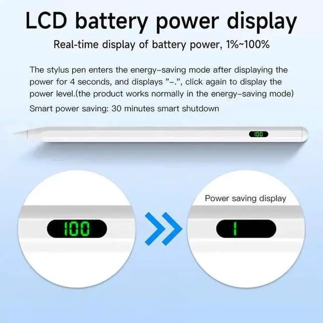 • Stylus Pen with Palm Rejection Tilt Sensor Digital Power Display Tip Replaceable Magnetic Stylus Pen for IPad