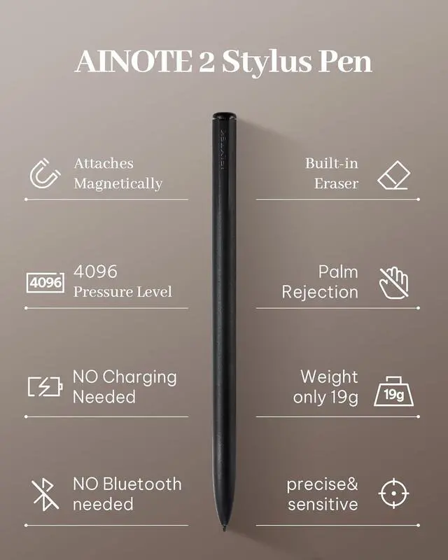 AINOTE 2 Stylus Pen, 4096 Pressure Levels, Pen & Eraser in One, Digital Notebook Pen for Note-Taking & Sketching, Compatible with AINOTE 2 E-Ink Tablet, No Charging or Bluetooth Required