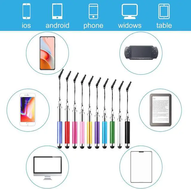 Universal & Enough QuantityYou'll receive 10 stylus pens ensuring each electronic device can be equipped with one. The ample quantity and variety of colors make sharing with family or friends convenient. These stylus pens are universally compatible with any other capacitive touch screen like Smartphone Tablet etc.